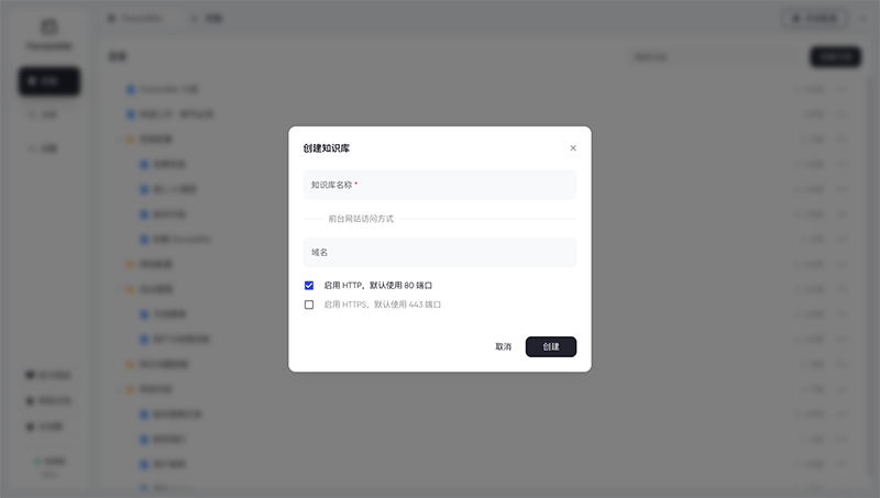 一切配置就绪后,你需要先创建一个 “知识库”。