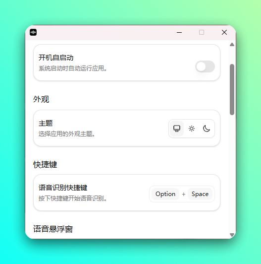 启动/停止 - 自动粘贴: 识别完成后自动输入到活跃应用