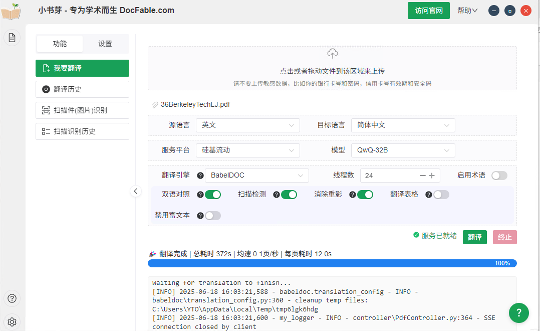 - 降低使用门槛:将复杂的开源项目(pdfmathtranslate/babeldoc)封装为简单界面