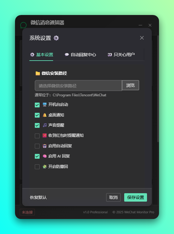 DeepSeek 导航网:WeChatNotify 一款微信消息通知管理器,支持利用 AI 自动回复微信消息,可以让电脑在后台监控微信消息,并在桌面上弹窗提醒。如果你启用了“只关心用户”,那它就只会提醒你关心的那几个人。