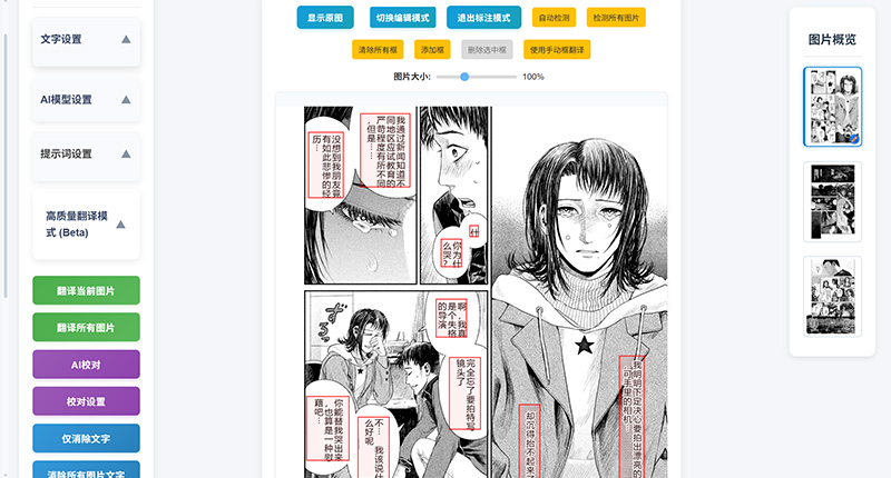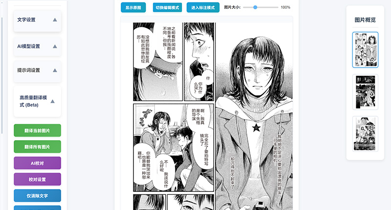 - 状态标记: 缩略图会直观显示图片是否翻译失败或是否包含手动标注。