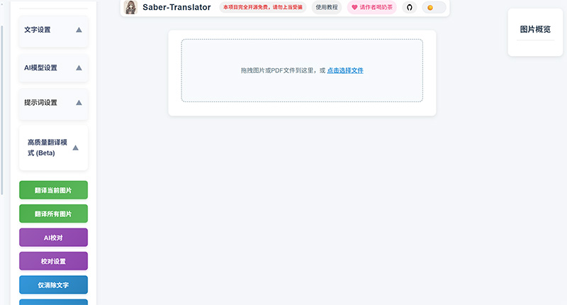 - 支持上传常见的图像格式 (如 JPG, PNG, WEBP 等) 和 PDF 漫画文件。