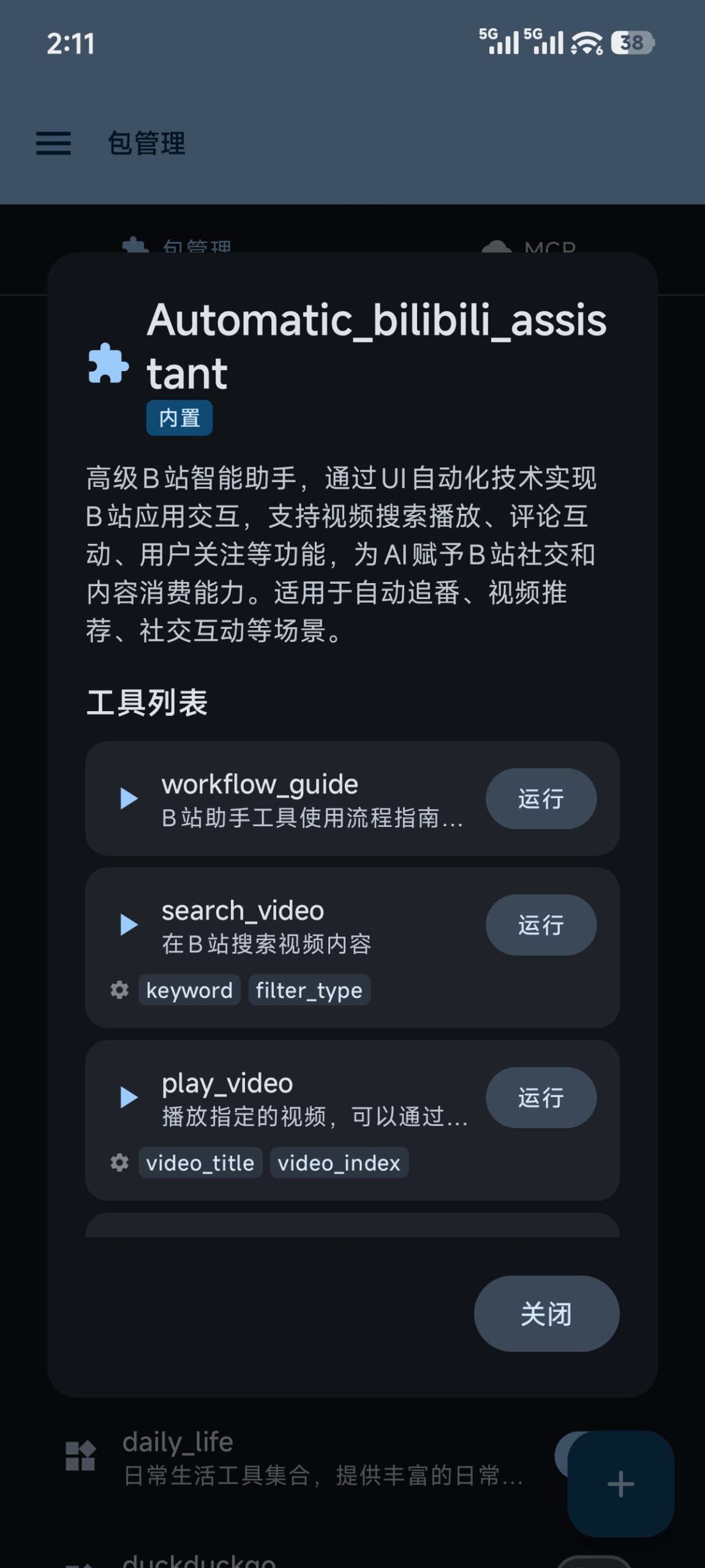 40+ 内置工具 + MCP 市场插件,文件操作、网络请求、系统控制、媒体处理应有尽有