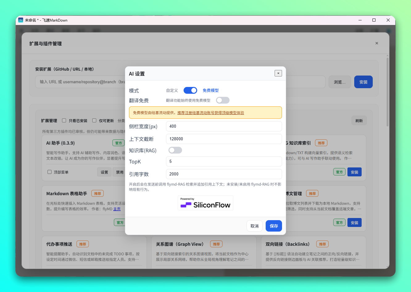 FlyMD 拥有丰富的插件生态,支持通过扩展插件无限扩展功能。