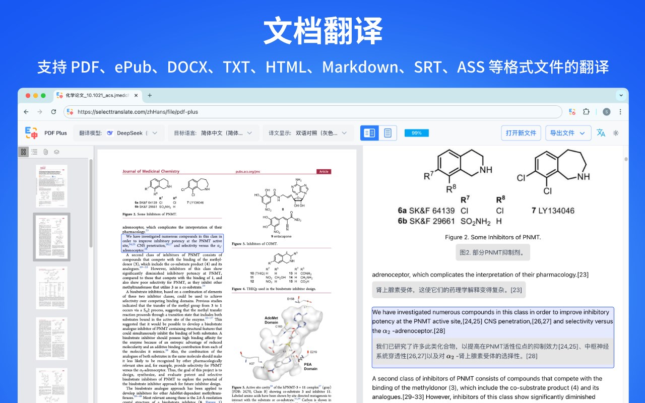 同时还支持 DOCX、TXT、HTML、Markdown、字幕文件(SRT/ASS)等格式文件的翻译。