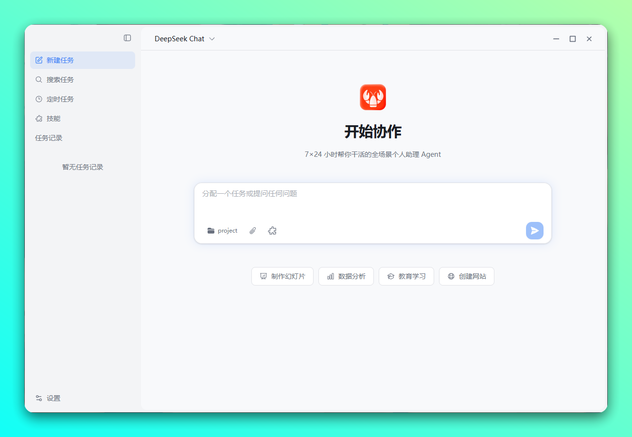 - 全场景办公助理 — 数据分析、PPT 制作、视频生成、文档撰写、Web 搜索、邮件收发,覆盖日常办公全流程