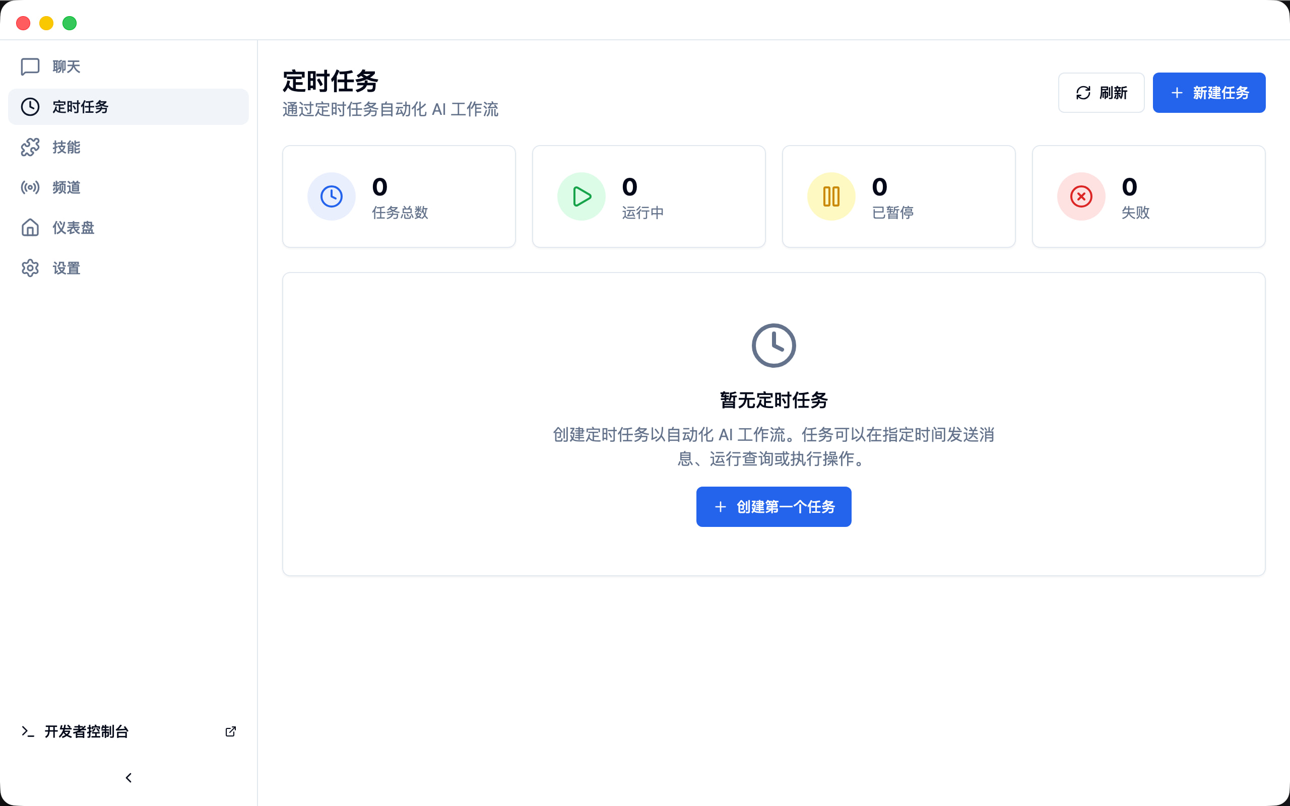 - 开始工作:对话下达指令,或设定定时任务让 AI 自动执行。