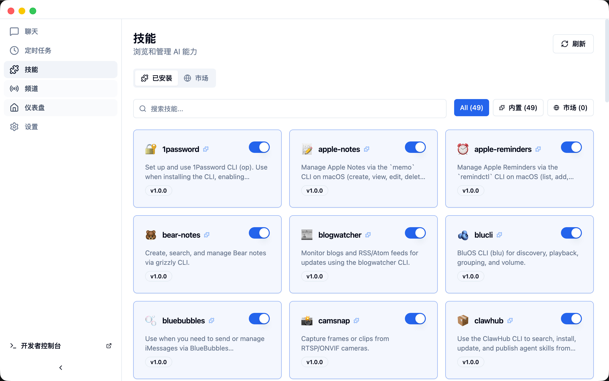 - ClawHub 市场:社区驱动的技能市场,一键安装,持续扩展