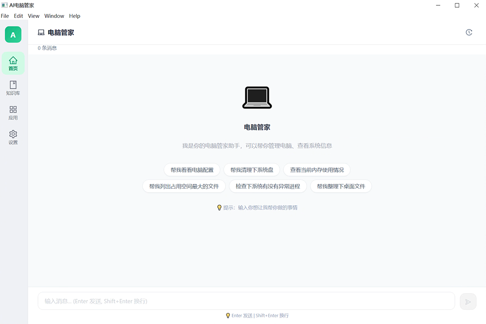 - 智能电脑管理 — 查看系统配置、清理磁盘空间、监控内存、管理进程、整理文件,用自然语言控制你的电脑