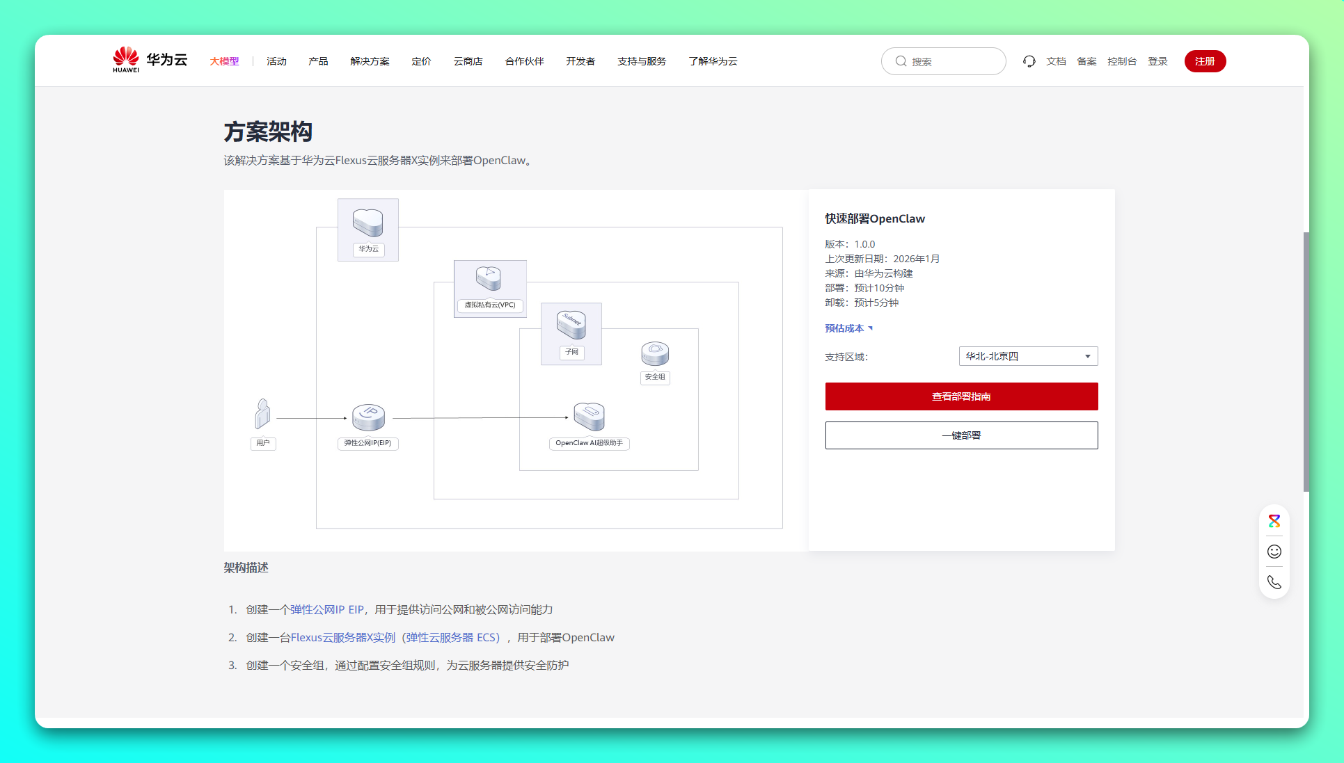 - 一键部署:一键轻松部署,即可完成下发云上资源和 OpenClaw 部署。