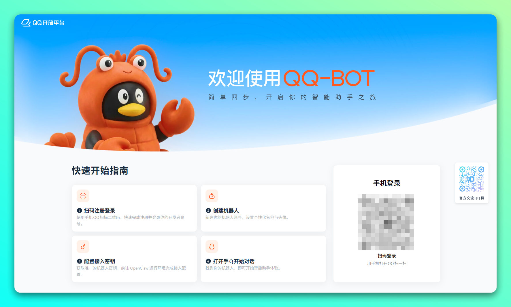 第一步用手机 QQ 扫描官方二维码,快速完成开发者账号注册与登录;