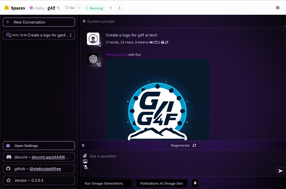 .zip文件。将其解压缩到系统上您选择的目录,然后执行g4f.exe文件以运行应用程序。 - 打开 GUI: 应用程序使用 GUI 启动 Web 服务器。打开您最喜欢的浏览器并导航到 http://localhost:8080/chat/ 以访问应用程序界面。
