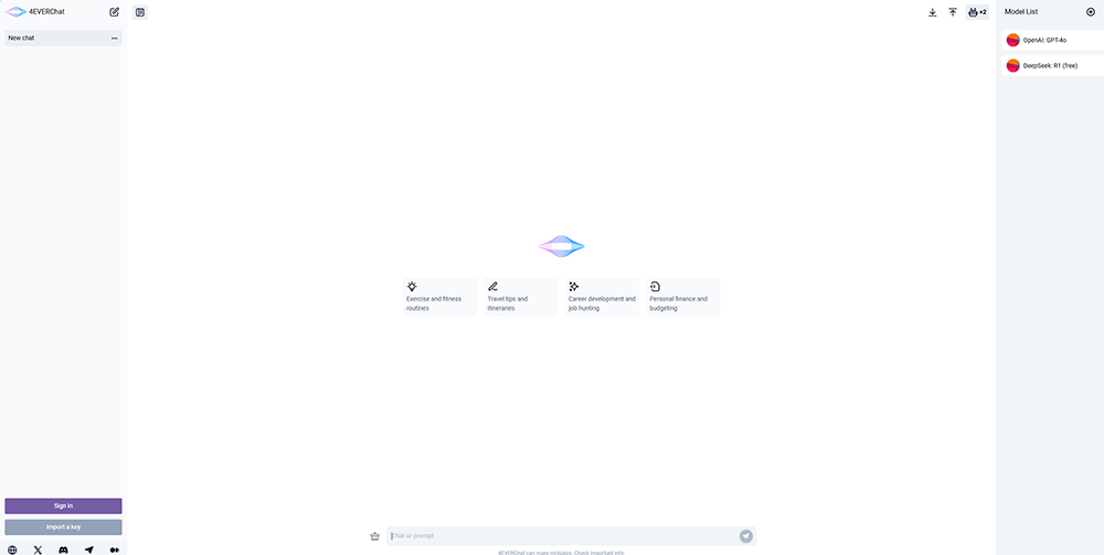 DeepSeek 导航网:4EVERChat 是一个多功能 AI 聊天平台,支持多种先进的 AI 模型集成与灵活切换,用户可按需选择不同模型进行智能对话或任务执行。支持包括 DeepSeek (申请 DeepSeek API)主流 AI 模型。